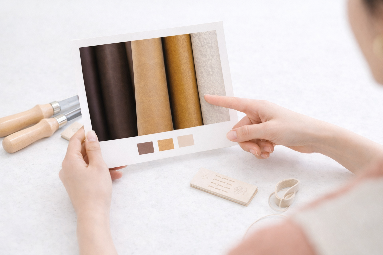 ヒアリング内容をもとに、素材や仕様をご提案。プロの職人が型紙を起こし、実物サンプルを製作します。