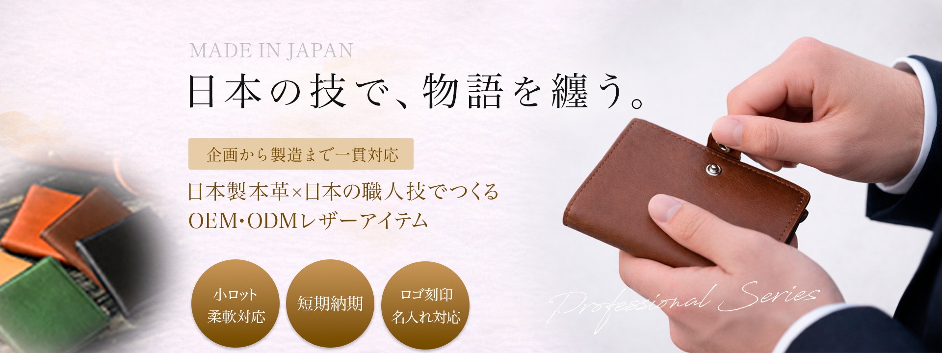 単に製品を作るだけでなく、その背景にある「職人の技術」や「素材の由来」といったストーリーを付加価値として提供。製品の持つ背景が伝わることで、受け取った方の愛着や満足度を高め、企業やブランドのファン作りに貢献する「心に残る製品」を生み出す。