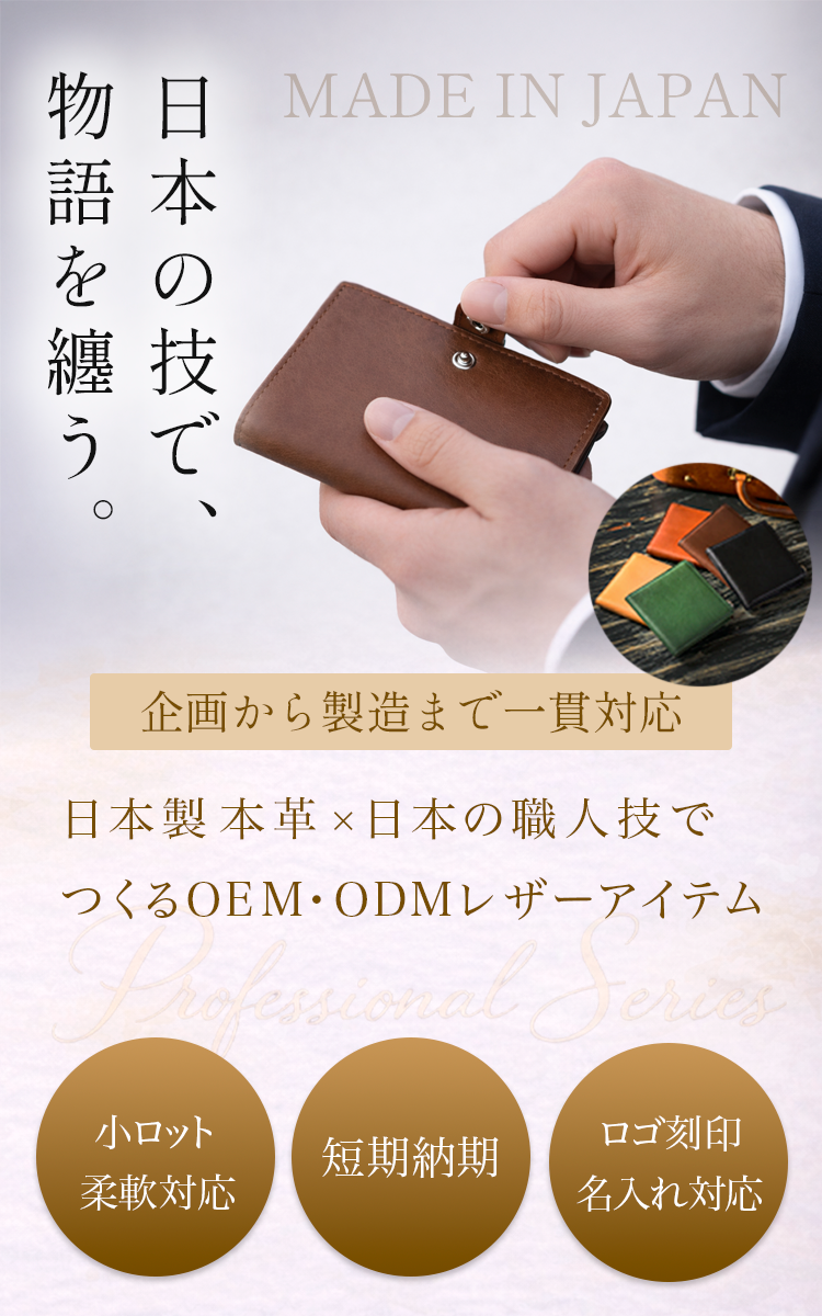 国内のタンナー(製革業者)から仕入れた上質な素材と、実績豊富な国内縫製工場の技術を融合。海外大量生産品では再現できない「耐久性」と「品格」を兼ね備えた、確かな品質を提供。