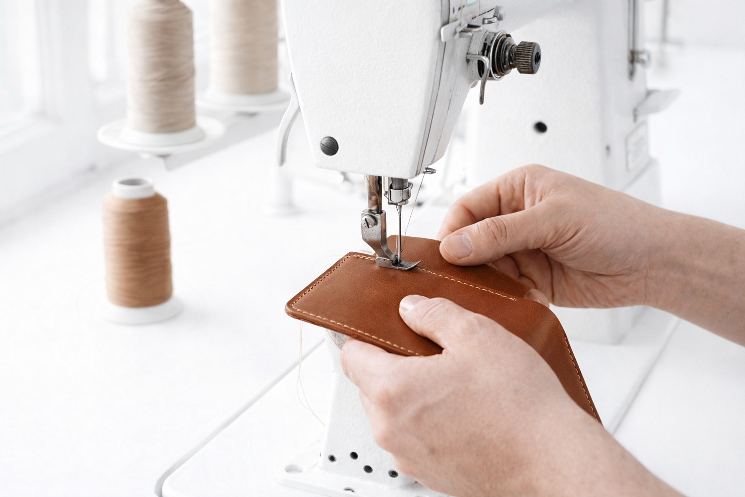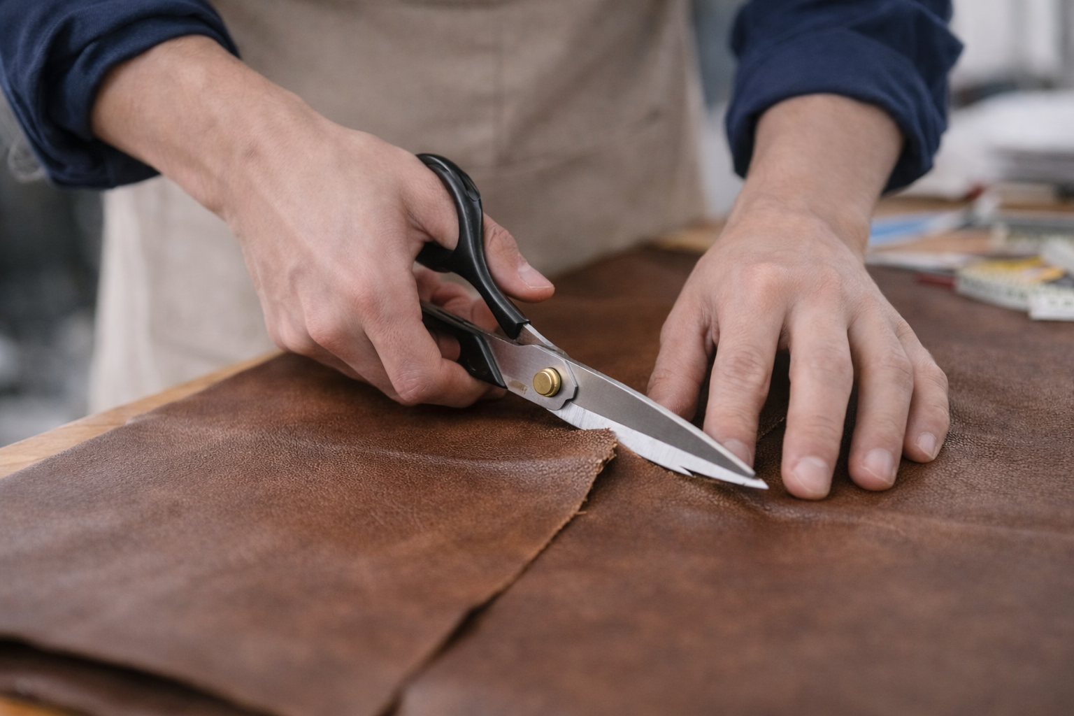 熟練の職人が一つひとつ丁寧に製造します。天然皮革の特性を見極め、裁断から縫製、仕上げまでを行います。